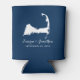 Navy Blue and White Cape Cod Map Wedding Can Cooler. This Can Cooler is perfect to use day of the Wedding Reception or Rehearsal Dinner. It features a navy blue background with a white Map of Cape Cod, a part of Massachusetts. Customise text on front and back. For enquiries about custom design changes by the independent designer please email paula@labellarue.com BEFORE you customise or place an order.