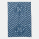 Navy Blue and White Chevron Pattern, Your Monogram Tea Towel