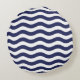 Navy Blue and White Coastal Wave Pattern Round Cushion