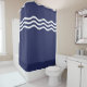 Navy Blue and White Coastal Wave Pattern Shower Curtain
