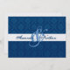 This navy blue and silver design makes an elegant wedding invitation. The damask on the back is in a subtle two tone, which adds a nice touch. You can experiment with different paper types to get just the look you want. This invitation is featured on a premium silver metallic paper which gives your invitation an extra special shimmer and glow.