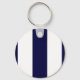 Navy Blue and White Extra Large Stripe Pattern Key Ring