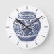 Navy Blue and White Ginger Jar Chinoiserie Design Round Clock