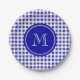Navy Blue and White Gingham, Your Monogram Paper Plate