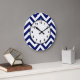 Navy Blue and White Large Chevron ZigZag Pattern Clock