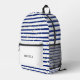Navy Blue and White Marine Stipes Modern Monogram Printed Backpack