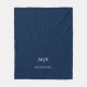 Navy Blue and White | Modern Monogram Fleece Blanket