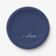 Navy Blue and White Modern Monogram Paper Plate