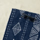 This navy blue and white beach towel with a modern tribal pattern features elegant hand-drawn shapes filled with different illustrations like sun, moon, waves, and stylised mountains. Geometric shapes were combined into vertical stripes. The background was designed with a textured-look. The design was inspired by nature adventures and mudcloth style designs.