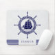 Navy Blue And White Nautical Boat Wheel Mouse Pad