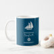 Elegant dark blue and white design with a nautical theme. Personalise your name in the template. Decorated with a sailboat gliding by, and a navigation icon.