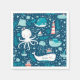 Add a custom nautical touch to your little kid's birthday party with this adorable ocean set of paper napkins. Each napkin has a pattern of a whale, octopus, sailboat, steam boat, jellyfish, submarine, and lighthouse on a navy blue background. Napkin may be personalised with the first name of your kid.
