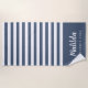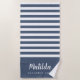 blue and white personalised gift beach towel design. Modern, graphic design. Ideal for bachelorette party, bridal shower parties, wedding, vacation or honeymoon.