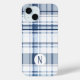 This sophisticated phone case showcases a traditional navy blue and white plaid pattern, offering a clean and polished look suitable for any occasion. The deep navy tones contrast beautifully with the bright white, creating a bold yet classic appearance. The intricately woven plaid design features varied line thicknesses that intersect to form a balanced grid, adding structure and style to your phone. The customisable monogram in the centre allows for a personal touch, making it a perfect gift or a stylish accessory for yourself. Ideal for those who appreciate a mix of elegance and durability, this case provides both protection and a timeless design that works well in all seasons, particularly during fall and winter.