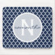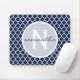 Navy Blue and White Quatrefoil Monogram Mouse Pad