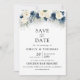 Navy Blue and White Rose Save The Date Cards