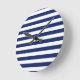 Navy Blue and White Stripe Pattern Round Clock