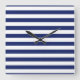 Navy Blue and White Stripe Pattern Square Wall Clock