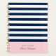 Stylish and trendy Personalised Nautical navy and white stripes with pink accent planner.