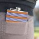 Navy blue and white stripes with burnt orange hip flask