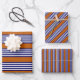 Navy blue and white stripes with burnt orange wrapping paper sheet