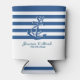 Navy Blue And White Stripes With Nautical Anchor Can Cooler