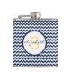Navy Blue and Yellow Chevron Monogram Hip Flask