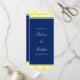 An elegant yellow and navy blue wedding program. Featuring a modern flourish swirl damask pattern. Easily personalise for your event.