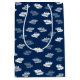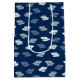 Navy Blue Antique Leaves Pattern Medium Gift Bag