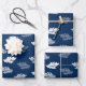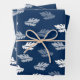 Navy Blue Antique Leaves Pattern Wrapping Paper Sheet