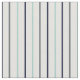This fabric features a striped pattern with stripes of navy blue, light aqua blue and charcoal grey against an eggshell white background for a cool summer colour palette.