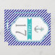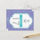 Navy blue, white stripes and anchor nautical wedding table number postcard. A stylish striped pattern design with navy blue, white diagonal stripes, a grey anchor with a turquoise heart and rope and your text in a frame with an aqua banner. Modern yet with a vintage look in a sense. You can change background and text colour choosing from over 200 colours from Zazzle colour chart. This classy design is a completely customisable template and is part of a wedding set perfect for a summer nautical or beach wedding.