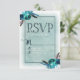 Navy Blue & Aqua Watercolor Floral Wedding RSVP Card