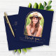 Square Boho Arch Minimalist Navy Blue and Gold Photo Graduation Thank You card featuring your photo and our stunning chic boho typography and geometric arch in modern navy blue and saffron yellow gold. Perfect for your graduation thank yous! Please contact us at cedarandstring@gmail.com if you need assistance with the design or matching products.