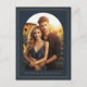 navy blue arch photo save the date postcard