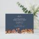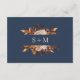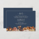 Navy Blue Autumn Details Enclosure Card. Perfectly complementing the "Navy Blue & Terracotta Fall Wedding Invitations," this details enclosure card brings your guests the information they need in a beautifully designed format. Hand-painted florals in burnt orange, terracotta, and copper tones against a navy blue background create an elegant presentation. Set the tone for an organised and thoughtful celebration, leaving no detail overlooked.