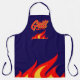 Navy blue BBQ apron with red hot fire flames. Hot GrillMaster cooking apron for chef cook . Custom colour apron with script typography and burning flames design. Cool summer Birthday gift idea for chef, cook, dad, husband, uncle, brother, boyfriend, boss, coworker, colleague etc. Personalise this kitchen apron with a name optionally.