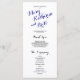 Gorgeous navy blue and black script typography on a white background make these elegant modern wedding programs stand out. Design by Elke Clarke © Customise with your background colour and all your personal information to a luxury wedding program which your ushers can hand out as your guests enter the church or are seated where the ceremony will take place. It helps people follow along during the ceremony but also acts as a keepsake for your guests. You can use the template fields to fill in the suggested information about your wedding party and order of service and thank you message or select "customise it" and use the edit menu to change the text spacing, fonts, colours as you wish to create your own wedding programs.