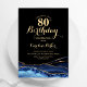 Navy Blue Black Gold Agate Marble 80th Birthday Invitation