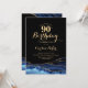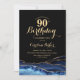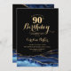 Navy Blue Black Gold Agate Marble 90th Birthday Invitation