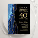 Navy Blue Black Gold Agate Surprise 40th Birthday Invitation