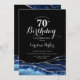 Navy Blue Black Silver Agate 70th Birthday Invitation