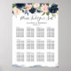 Navy Blue Blue Blush Pink Botanical Seating Chart