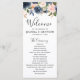 Navy Blue Blue Blush Pink Rose Botanical Wedding Program