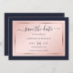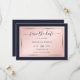 Elegant navy blue, blush and rose gold wedding save the date card featuring a modern script font. Easily personalise this card online. Matching items available to complement this minimalist, yet elegant wedding save the date card.