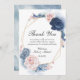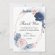 Navy Blue Blush Dusty Floral Gold Frame Wedding Thank You Card