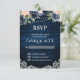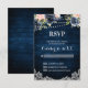 Navy Blue Blush Floral Rustic String Light RSVP Card