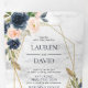 Navy Blue Blush Marble Geometric Floral Tri-Fold Invitation