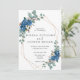 This design features geometric watercolor navy blue blush pink florals. Personalise with your wedding details.