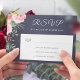 Romantic elegant wedding small RSVP enclosure note card with envelope featuring a blush pink watercolor roses bouquet with greenery leaves and foliage and a classy hand-lettered calligraphy script over a dark midnight navy blue chalkboard background.+++++++++++++ Matching invitation and stationery available in the collection.